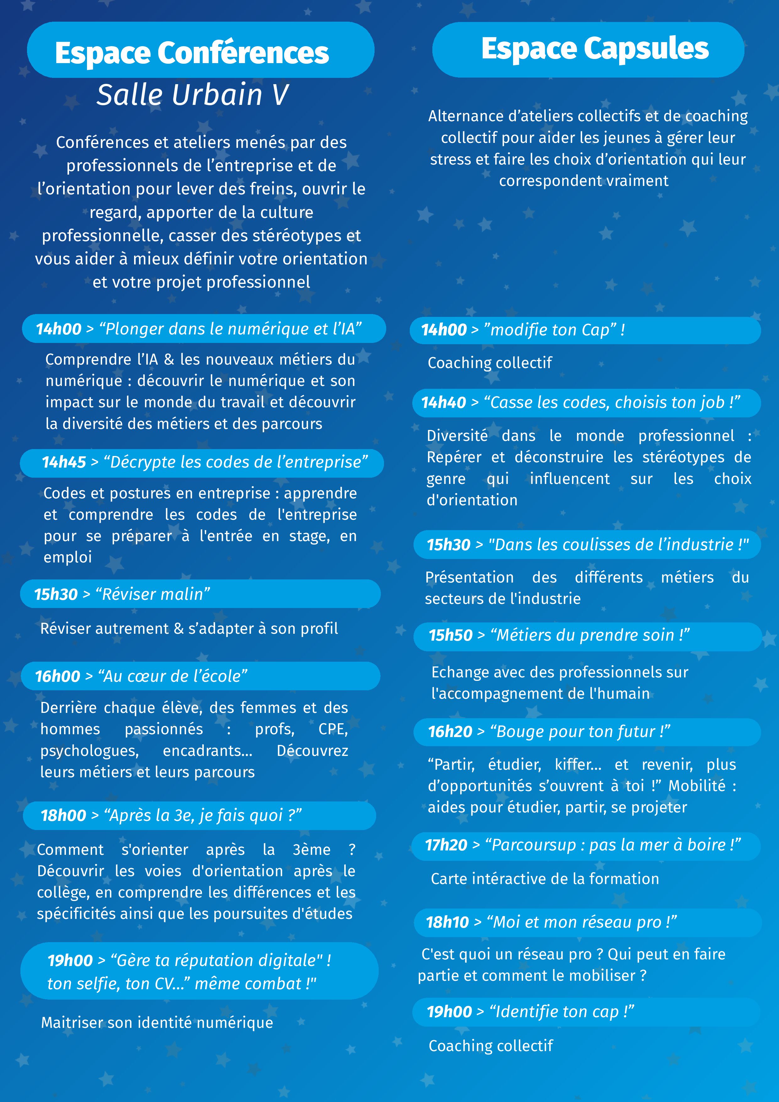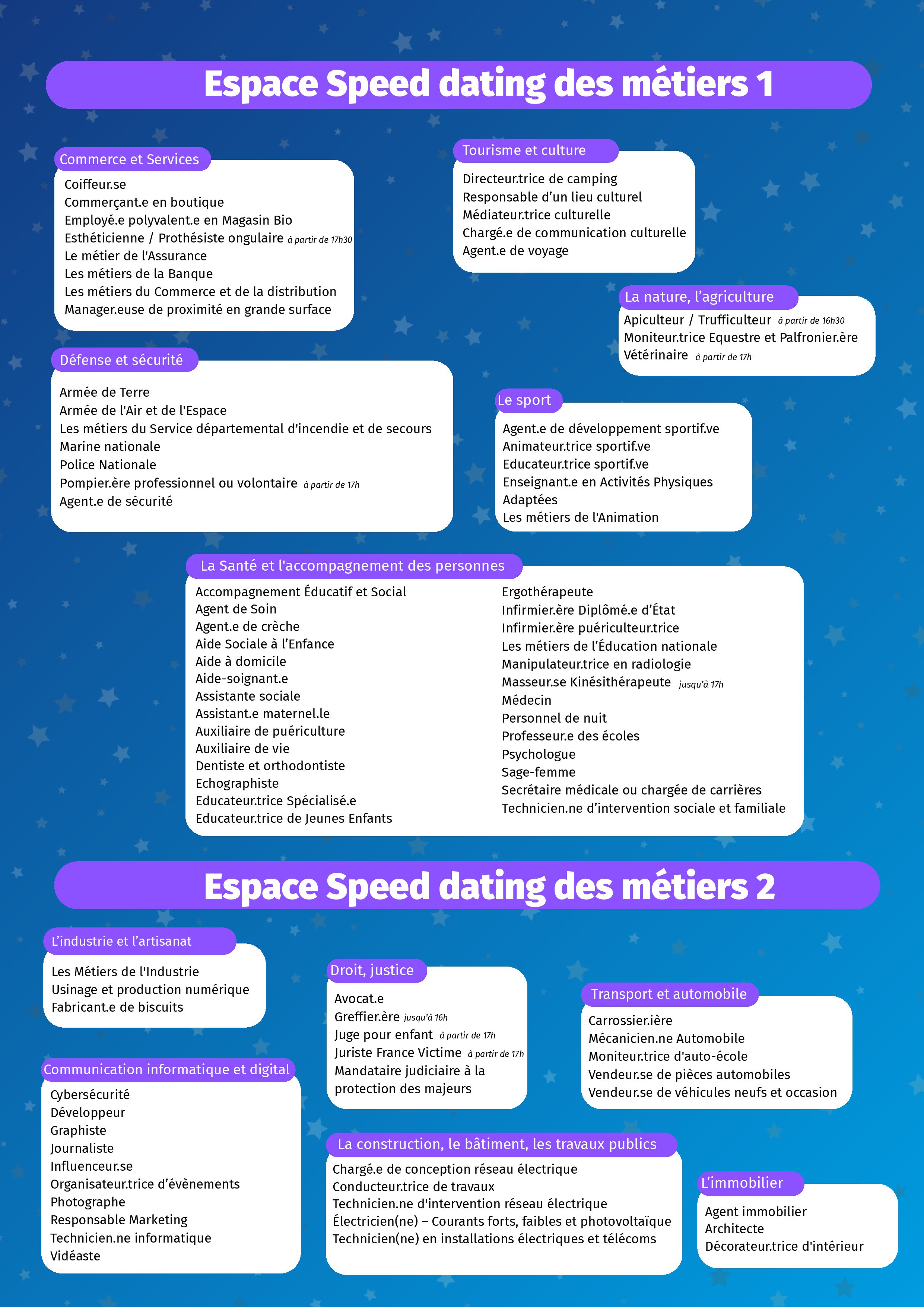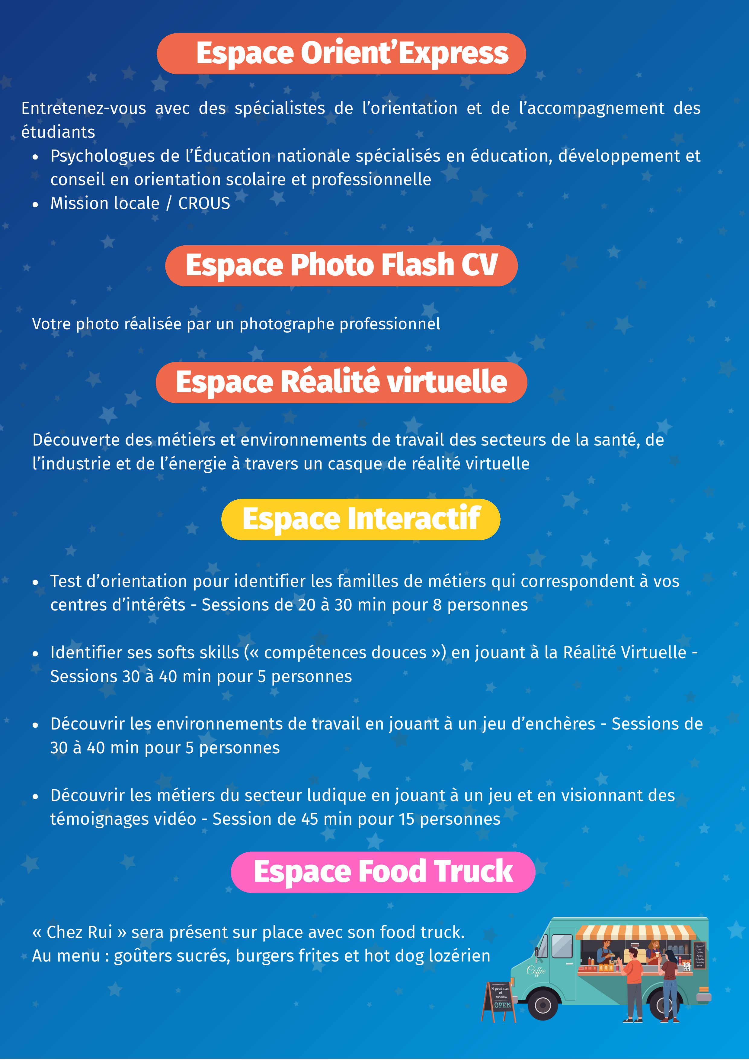 la Nuit de l'Orientation, évènement pour aider les jeunes à découvrir des métiers et les formations, échanger avec des professionnels et réfléchir à leur avenir, aura lieu le jeudi 13 novembre à l'Espace Événements de Mende, jusqu'à 20h.